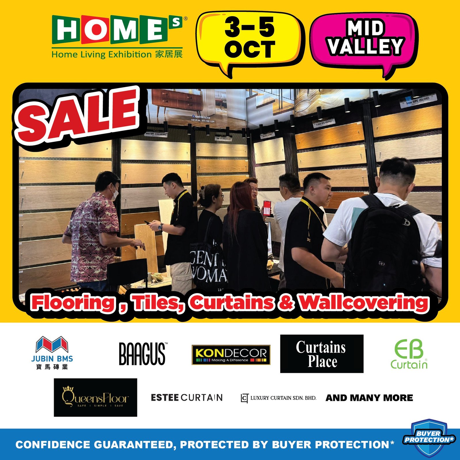 本次 Mid Valley家居展Flooring 与家具展区吸引了上百家品牌参展,包括 Queensfloor、Samsung、Panasonic、LG、BAAGUS、Rubine 等国际与本地知名厂商。官方认证机制确保所有参展商品皆为 正品认证品牌,每个展区都贴有官方标签,方便消费者辨识。