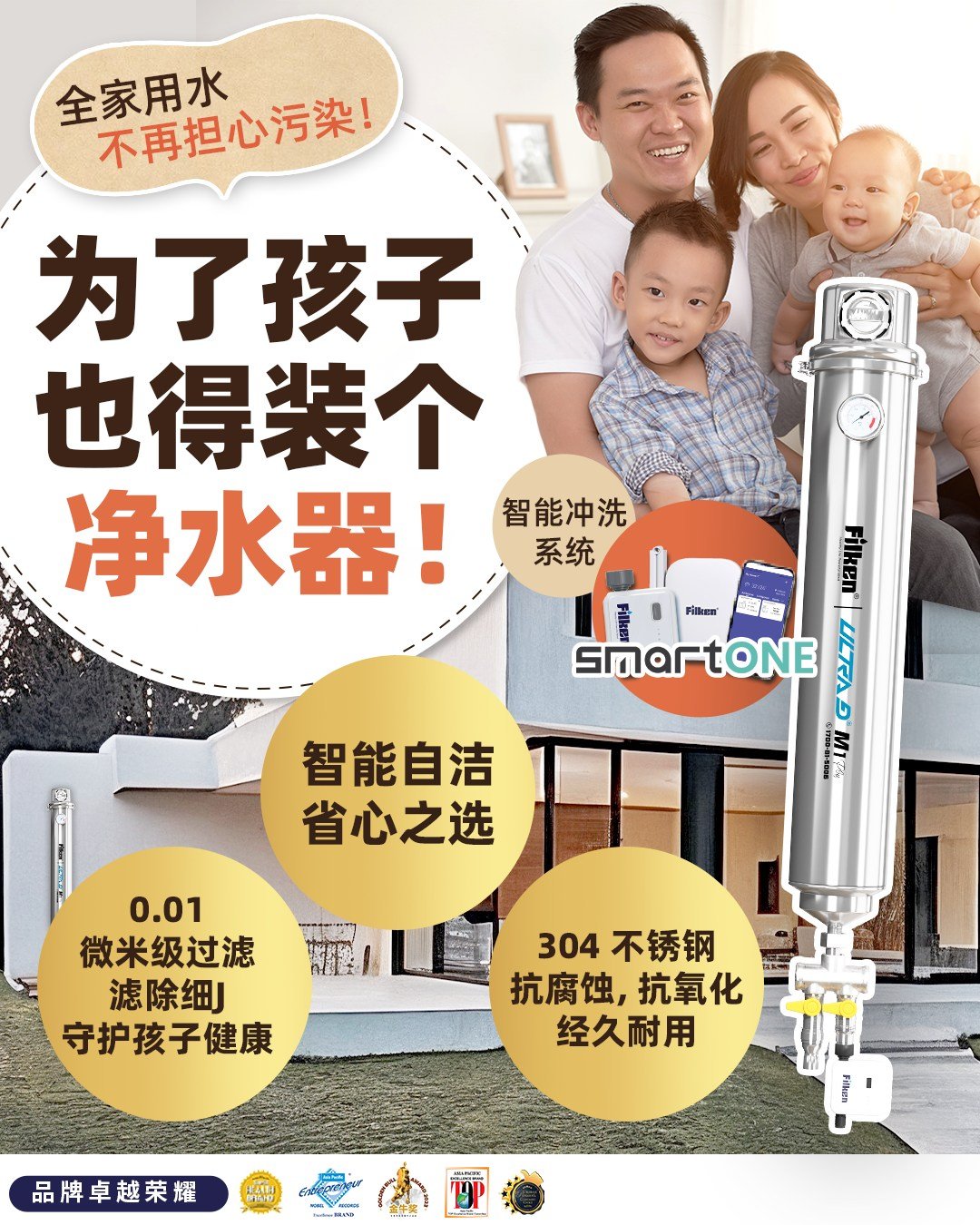 在不同的家庭场景中,Filken 都能提供合适的解决方案。对于空间有限的小户型,Filken Ultra D Desire 是理想选择,它体积小巧、安装方便,即使空间紧凑也能轻松适配。若家中有长辈,Filken Ultra D-Series X3 Outdoor 则更为合适,其滤芯寿命长、维护需求低,同时能有效改善水质,让饮用水更温和,更适合长辈日常使用。而对于有婴儿的家庭来说,Filken Trigen H2-300 则是贴心之选,冷热水即开,冲奶或泡茶都能更省心、更快捷。三款产品各有不同优势,但共同点在于 Filken 始终在 滤芯寿命长、去氯效果、自来水异味处理 等方面表现稳定。无论选择哪一款,Filken 都是新家首选家电中最值得信赖的品牌之一。
