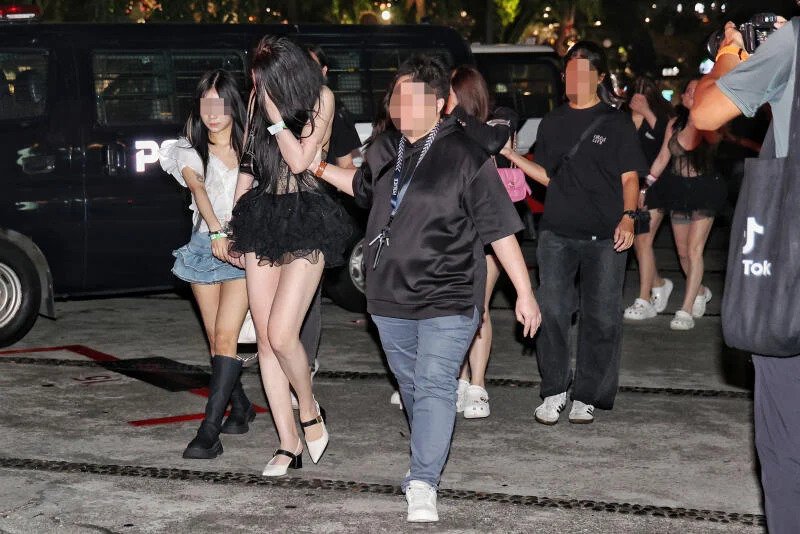 乌节路远东购物中心内一间KTV成为重点突击地点。警方在包厢中发现22名越南籍女子,疑似进行无准证陪酒并涉及卖淫。她们多数着装性感,包括蕾丝短裙与低胸吊带,部分女子见到媒体后刻意避镜头,以枕头遮脸。警方随后在现场对其进行盘查,并于凌晨将她们带上警车协助调查。