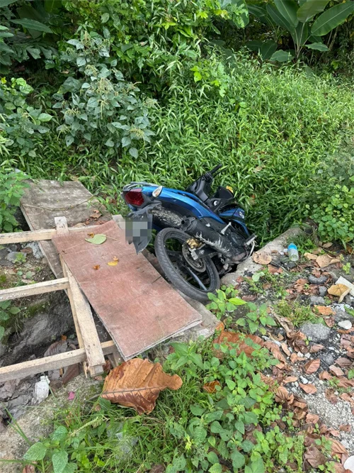 在进一步搜索过程中,警方在距离商场不远处发现一辆被弃置的蓝色摩哆。经初步检查,该摩哆被相信是嫌犯干案时所使用的交通工具。警方也确认,该摩哆涉及失窃记录,目前已被带回作为证物处理,并交由相关单位进行技术鉴证。